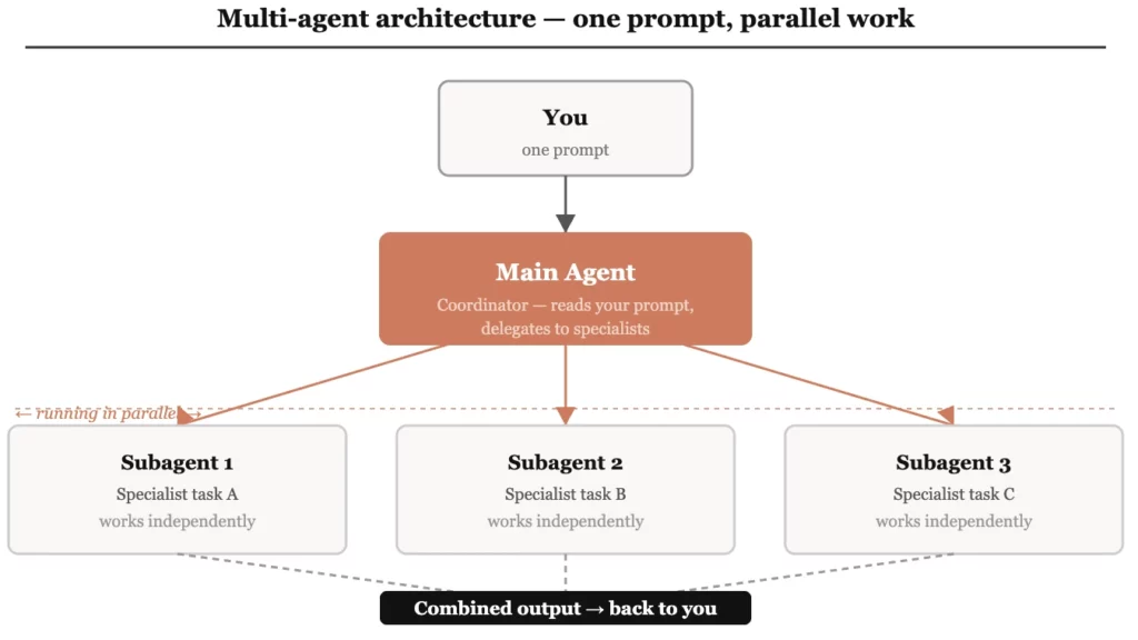 The practical impact: tasks that would take hours working sequentially can complete in minutes working in parallel. A single well-structured prompt can replace what previously required a team.