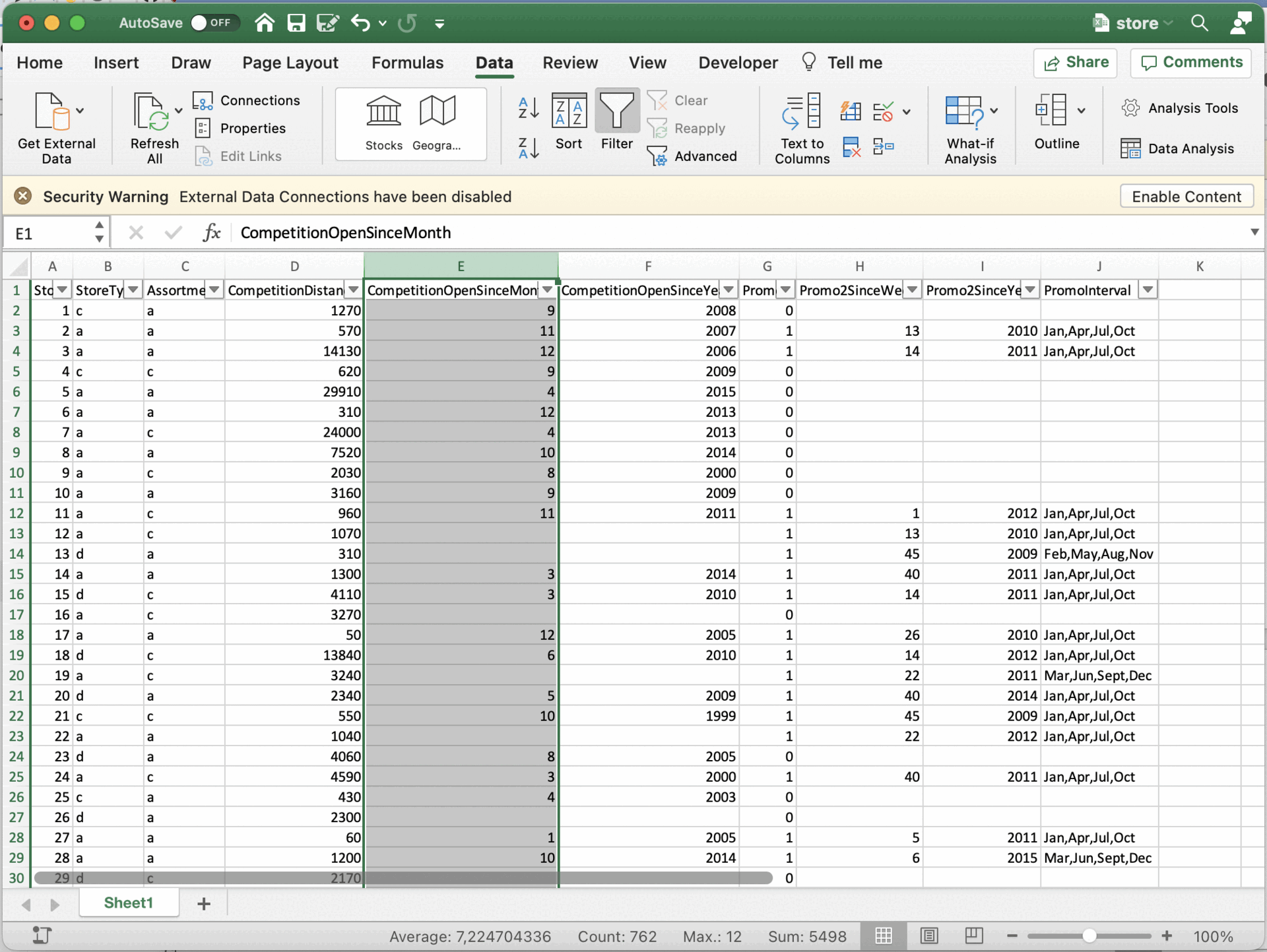Let’s apply these principles to the Rossmann dataset you’ve been working with. Open both rossmann-sales.xlsx and rossmann-stores.xlsx to begin your cleaning process.