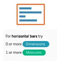 It’s time to choose your visualization type. You’ll notice that Tableau already defaulted to a bar chart, which in this case, is exactly what you need. If it hadn’t, you could have used the Show Me menu, which provides some handy hints about the type of data required for each chart type:
