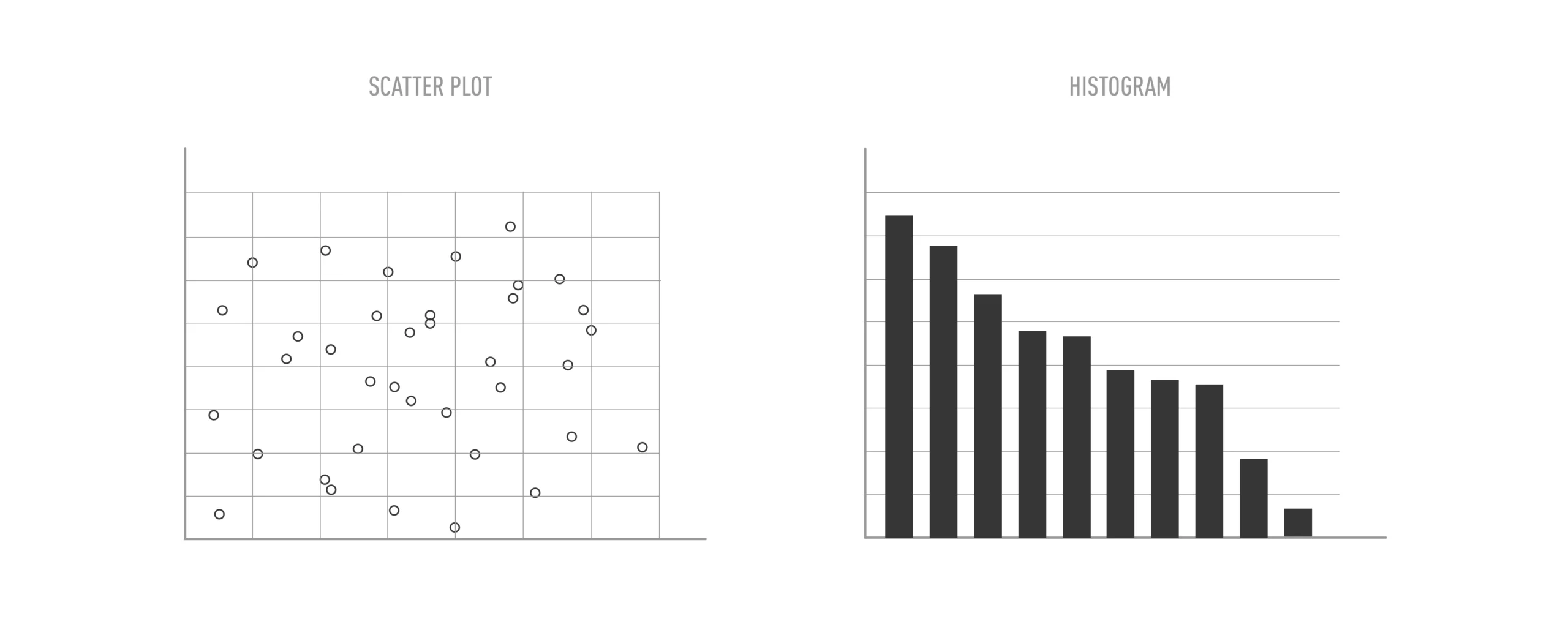 Statistical charts are similar to composition charts in that there are many different types of visualizations that fall under this category. They do, however, share one common purpose: to display some statistical aspect of the data. You’ve already learned about data distribution and skew, as well as what these concepts look like visually on a column chart. You’ve also looked into frequency distributions, which are usually represented visually in a specific type of column chart called a histogram. You know how to look for relationships between variables by calculating their correlation. Correlations can be examined visually using charts called scatterplots. All of these charts, no matter how different they may seem, fall under the category of statistical charts because of their statistical nature. You’ll be looking at a few different types of statistical charts, including histograms and scatterplots, later on in this Module.