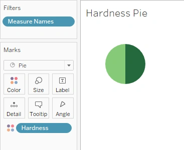 You’ll notice you have a pie chart now, but it’s not quite right. Hover over the image, and you’ll see each of the measure values. All of them have been sorted by hardness!